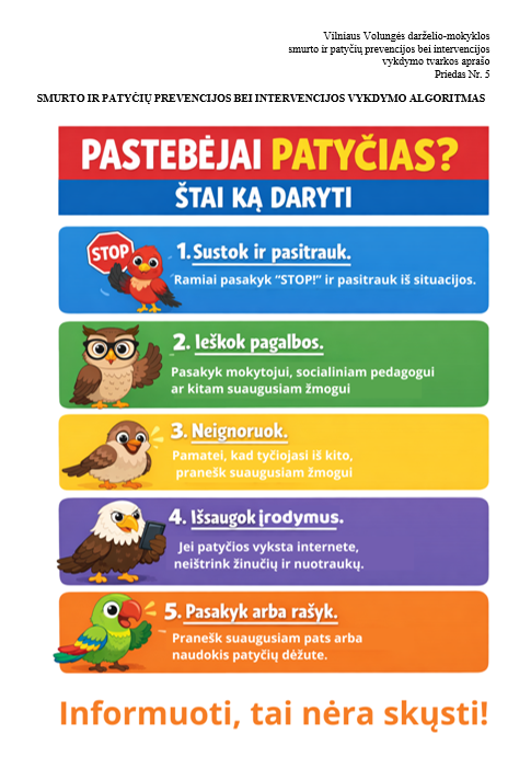Atnaujinti smurto ir patyčių prevencijos bei intervencijos vykdymo algoritmai
