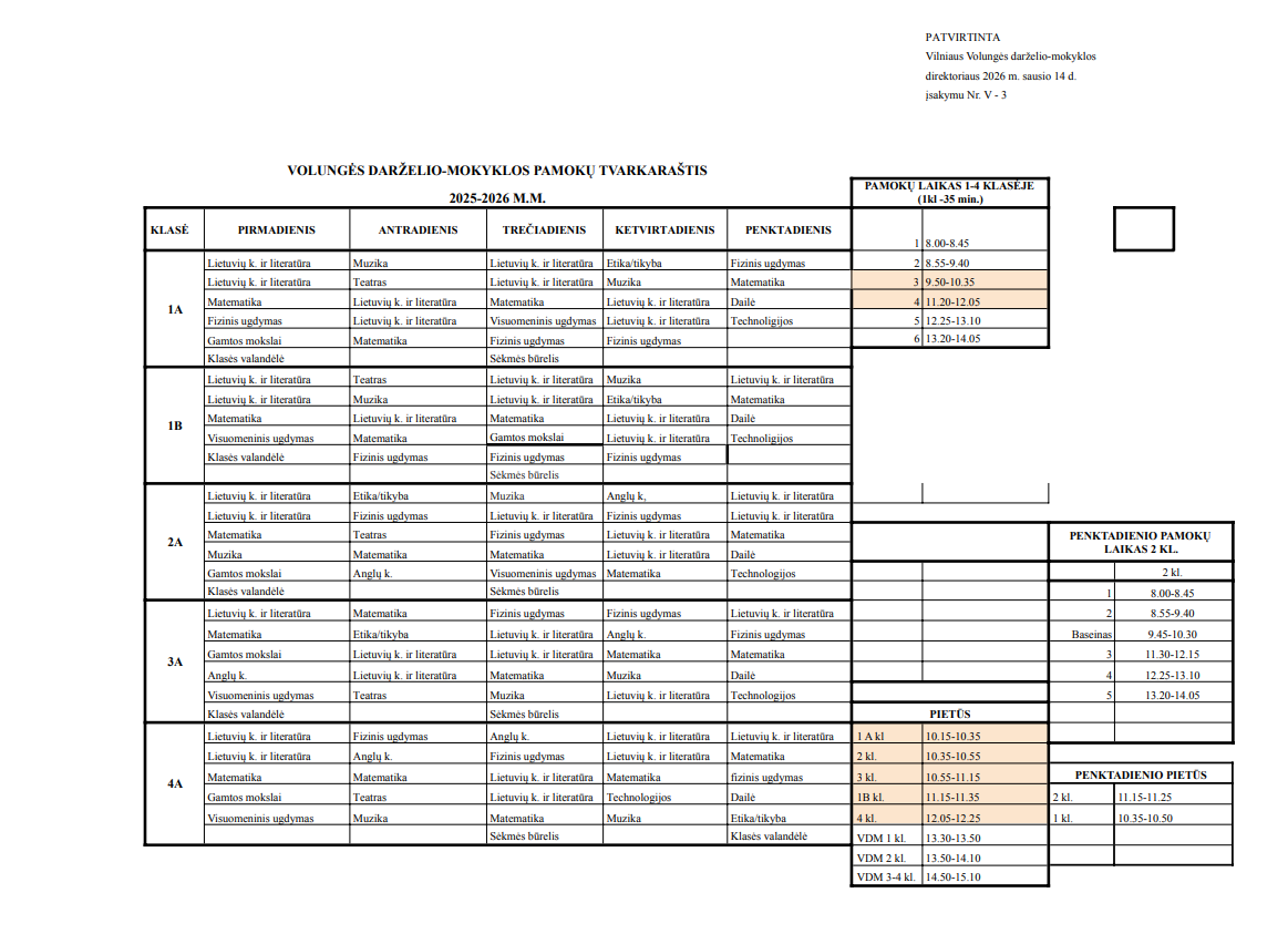 Pamokų tvarkaraštis